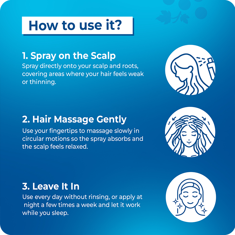 "I noticed a significant difference in my hair thickness and strength within just a few weeks of using this spray daily. My scalp feels healthier, and hair fall has noticeably reduced," says a satisfied customer.