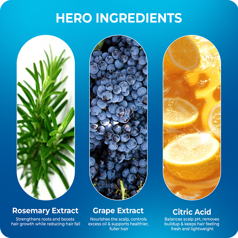 • Enriched with pure Rosemary Extract to boost blood circulation and invigorate hair follicles